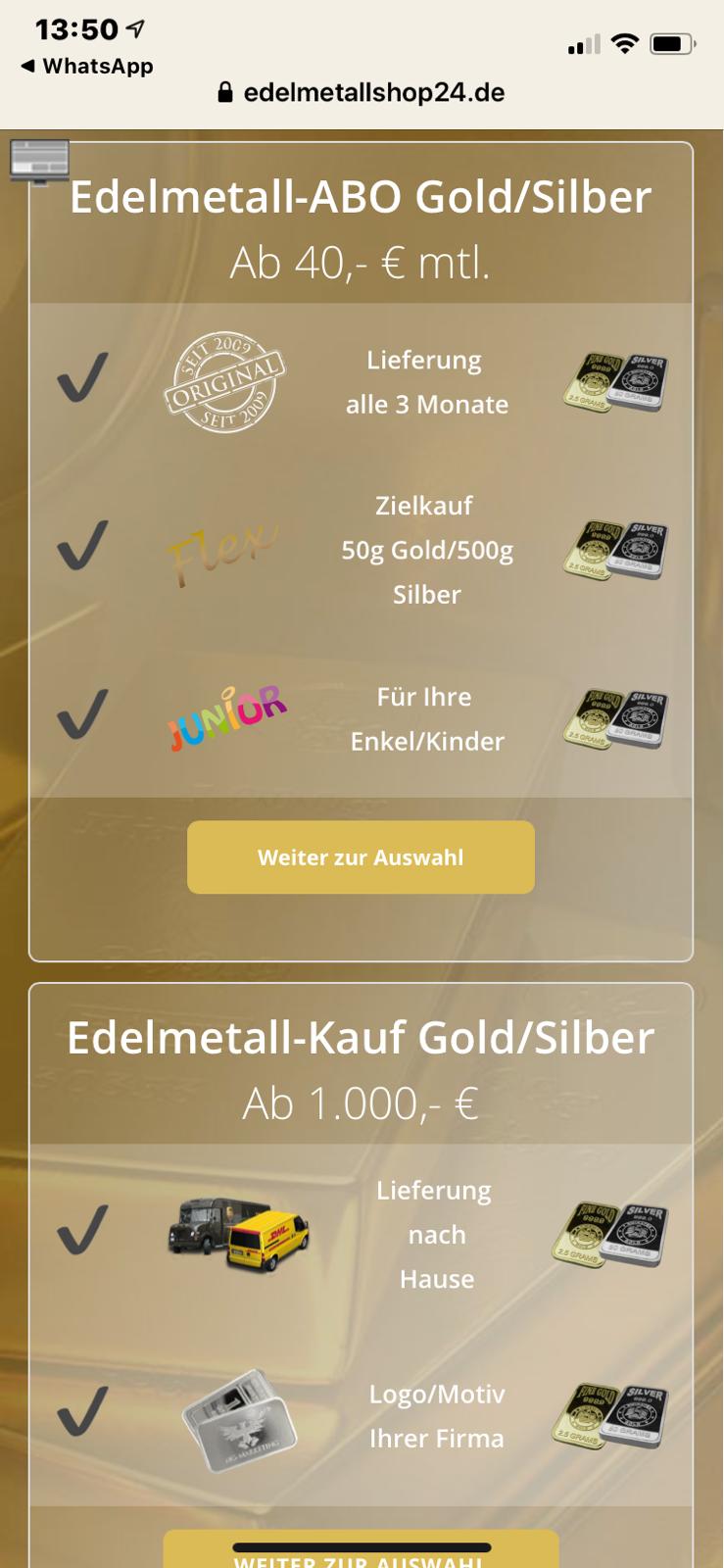 Goldbarren 999.9: 1g/2,5g/5g/10g/20g/31,1g/50g100g/250g/500g/1.000g